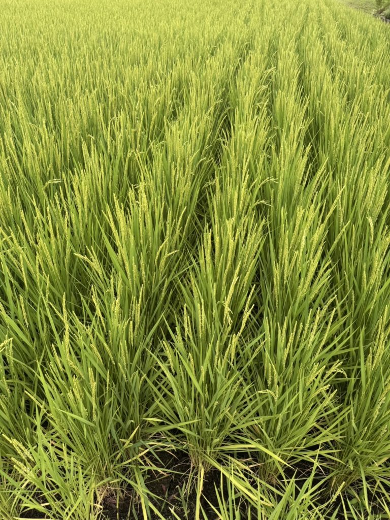 稲刈りまであと一か月、黄金色の田んぼになる日が楽しみです。