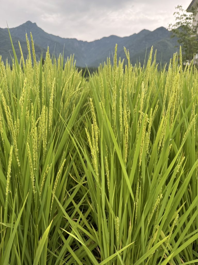今年は雨が少なく心配もありましたが、山沿いの地域で雪解け水が豊富なため、稲は水不足の影響を受けることなく順調に育っています。
